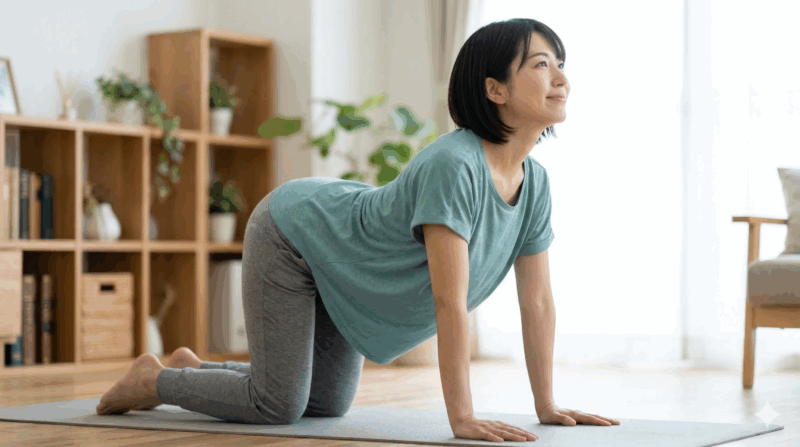 猫と牛のポーズ(キャット&カウ):背骨全体の柔軟性を取り戻す