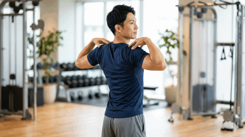 特に注目したいのが、肋骨から肩甲骨の内側にかけてついている「前鋸筋(ぜんきょきん)」や、肩甲骨の下から腕の骨につながる「大円筋」です。デスクワークやスマホ操作で長時間同じ姿勢を続けていると、これらの筋肉が縮んで固まり、緊張状態が続いてしまいます。