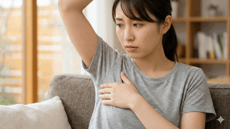 最も注意したいのが、脇の下に「しこり」がある場合です。脇の下を触ってみて、コリコリとした塊や、明らかに周囲とは違う硬い部分を感じることはありませんか?