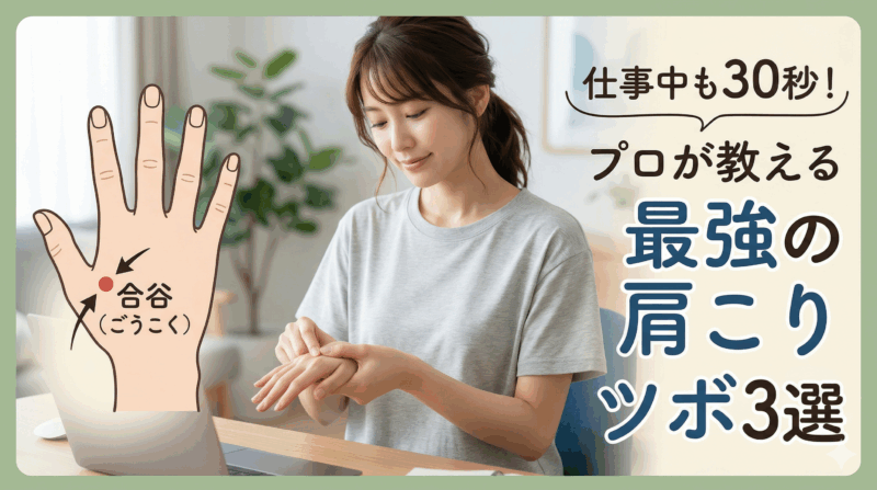【即効】仕事中でも30秒!プロが教える最強の肩こりツボ3選