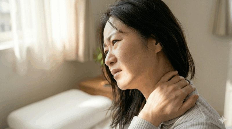 寝違えは、首や肩甲骨の筋肉のトラブルが中心ですが、以下のような神経症状が見られる場合は、緊急性が高いと考えられます。