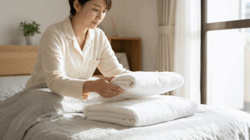 「自分に合う枕の高さがなんとなくわかるけど、新しい枕を買うのはまだハードルが高い…」 そんな方に、ぜひ試していただきたいのが、家にある**「バスタオル」**を使った簡単な高さ調整術です。