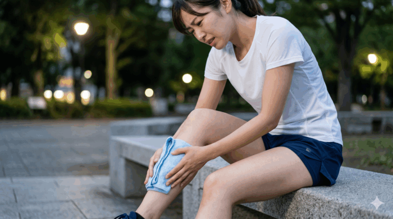 アイシング(冷却): 炎症を抑えるため、痛む場所を1回15〜20分程度、1日に数回アイシングしましょう。氷嚢や氷水を使い、冷やしすぎないように注意しながら行ってください。