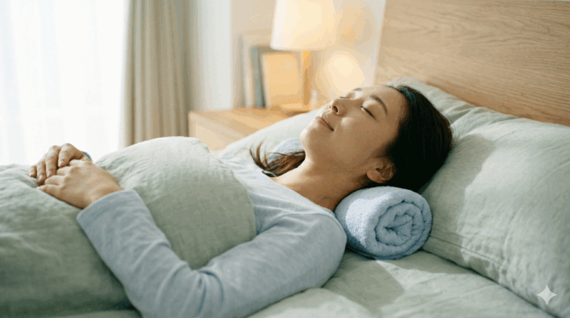 この状態で寝ることは、首の緊張をリセットし、血行を促進する効果が期待できると考えられています。首の負担を減らすためにも、ぜひこの「寝るだけ枕」を習慣にしてみましょう。