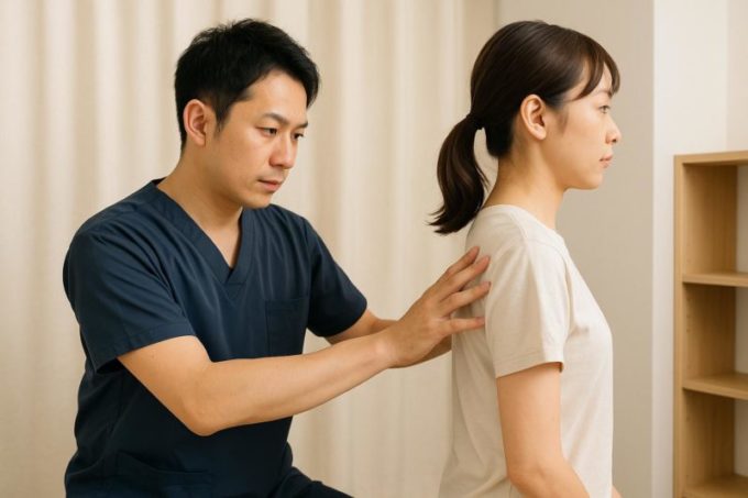 にっこり鍼灸整骨院では、まず姿勢や骨盤のゆがみを確認することから検査を行っています。爪のへこみは一見関係なさそうですが、体のバランスが崩れることで血流や自律神経が乱れ、結果的に爪の成長に影響することもあると考えられています。触診で筋肉の硬さや関節の動きを確かめることで、隠れた不調を見極めていきます。