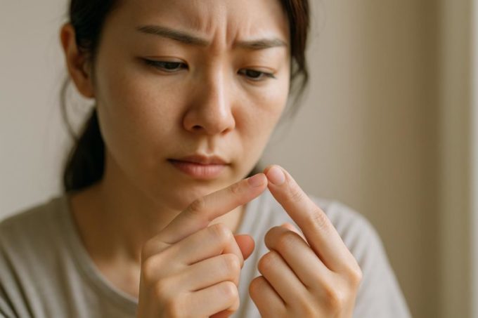 ストレスといっても、精神的なことだけではありません。睡眠不足、過労、食生活の乱れといった生活習慣の積み重ねもまた、自律神経の乱れにつながる要因とされています。体が休まらない状態が続くと、爪の生え変わりが追いつかず、表面にへこみや筋が残ることがあります。