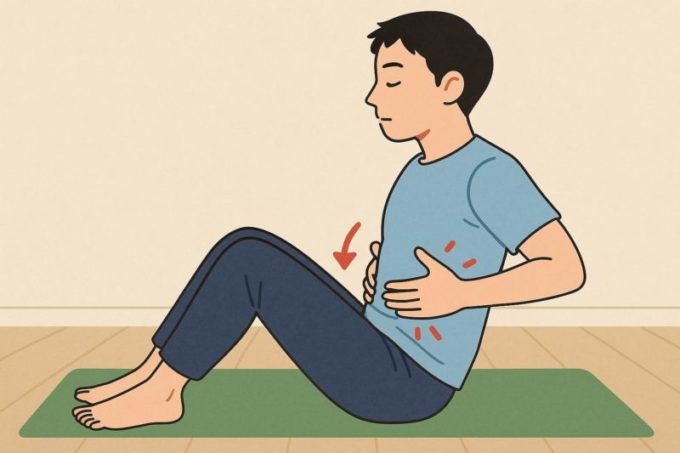 下っ腹を凹ます筋トレの定番はドローインです。お腹を大きく膨らませてから息を吐ききり、下っ腹をへこませるように意識します。慣れると家事や通勤中でも取り入れやすいとされています。呼吸と一緒にできるので、続けやすいのが特徴です。