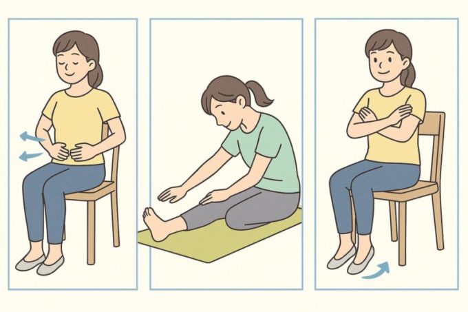 次におすすめなのは、膝を軽く持ち上げる運動です。椅子の座面に浅く腰かけて、両手で椅子の縁をつかみ、息を吐きながら片足、または両足をゆっくり持ち上げます。腹直筋を中心に刺激が入りやすく、下腹部の筋肉も意識できると言われています。無理のない範囲で回数を増やすと、少しずつ筋肉が働きやすくなるそうです。