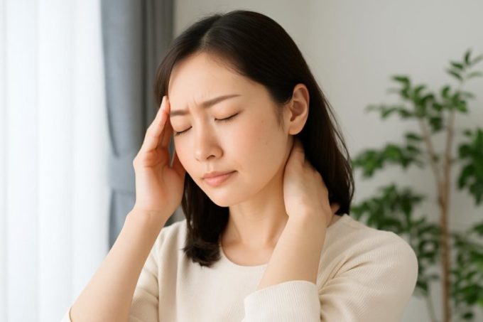 首から頭にかけての血流が悪くなると、重だるさや押したときの痛みにつながることがあります。また、自律神経が乱れていると血管の調整がうまくいかず、頭部の不快感として出ることもあると言われています。肩こりや眼精疲労を併発している方にもよく見られるパターンです。