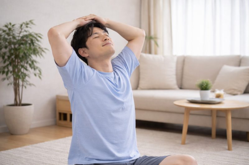 たとえば、深呼吸をしながら胸を軽く広げる動きや、肩甲骨を寄せてゆるめる体操は、首の緊張が抜けやすくなると言われています(引用元:足うらや整体院
