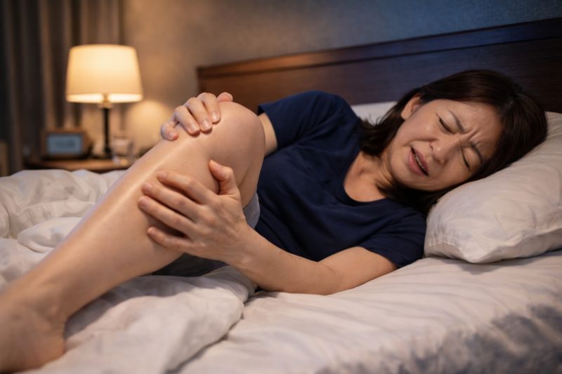 「正座したあとみたいな感じ」「電気が走るみたい」と表現される方もいれば、「なんとなく足全体が落ち着かない」と話される方もいます。痛みほど強くはないものの、地味に気になって夜眠りづらくなるケースもあるようです。