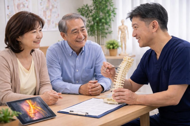 当院では、姿勢や筋力のチェックを行った上で、「整体よりも先に医療機関で確認したほうが安心」と判断した場合は、その旨をお伝えしています。
