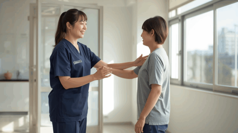 施術後は、ご自宅でできる軽いストレッチや呼吸体操をお伝えしています。