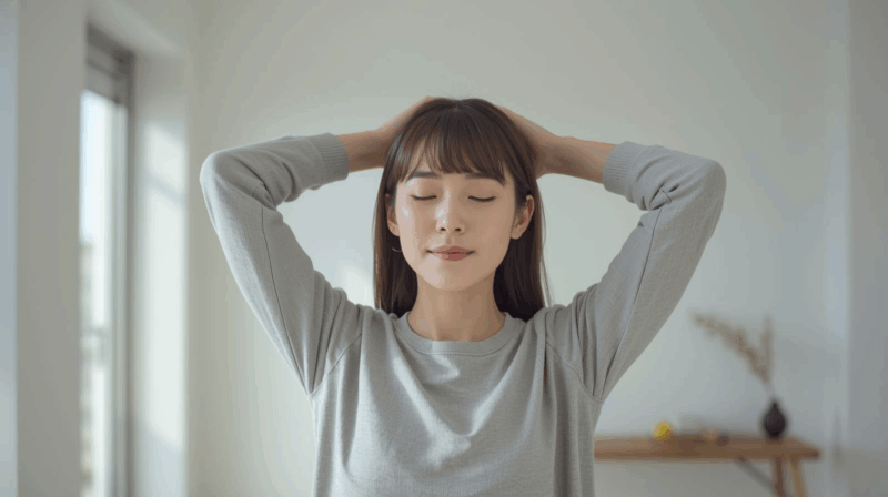 まずはシンプルな方法から。両腕をゆっくりと真上に挙げてみてください。耳の横まで自然に上がりますか?途中で肩がすくんだり、背中が反りすぎたりしていないでしょうか。