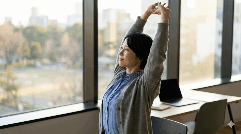 デスクワークに集中していると、ついつい数時間同じ姿勢で過ごしてしまいがちですよね。しかし、これこそが筋肉をガチガチに固めてしまう大きな要因だと考えられています。こまめに離席して体を動かすことは、筋肉の硬直を防ぐための「最強の防御策」だと言われています。