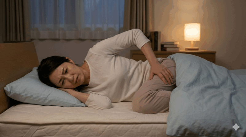ヘルニアや坐骨神経痛で寝れないとお悩みの方へ。夜中に増す痛みの原因や、今すぐ試せる「痛くない寝方(横向き・仰向け)」を専門的視点で解説します。クッションの活用法や避けるべきNG習慣を知り、辛い夜を乗り越えて深く眠るためのヒントを見つけましょう。