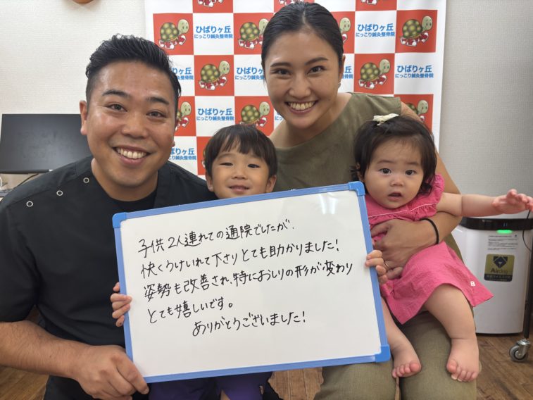 子供二人連れての通院でしたが、快くうけいれて下さりとても助かりました!姿勢も改善され、特におしりの形が変わりとても嬉しいです。ありがとうございました!