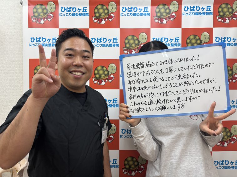 産後骨盤矯正でお世話になりました!説明やアドバイスも丁寧にしていただけたので毎回安心して受ける事が出来ました。後半は娘が泣いてしまう事が多かったのですが、受付の方が抱っこで対応してくださり助かりました!これからも通い続けたいと思いますので引き続きよろしくお願いします。